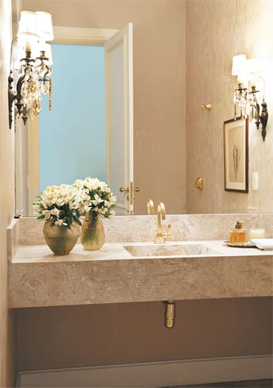 Esse ambiente merece uma decoração que impressione. Nestes projetos, você verá papéis de parede, ladrilhos hidráulicos, espelhos e bancadas sob medida