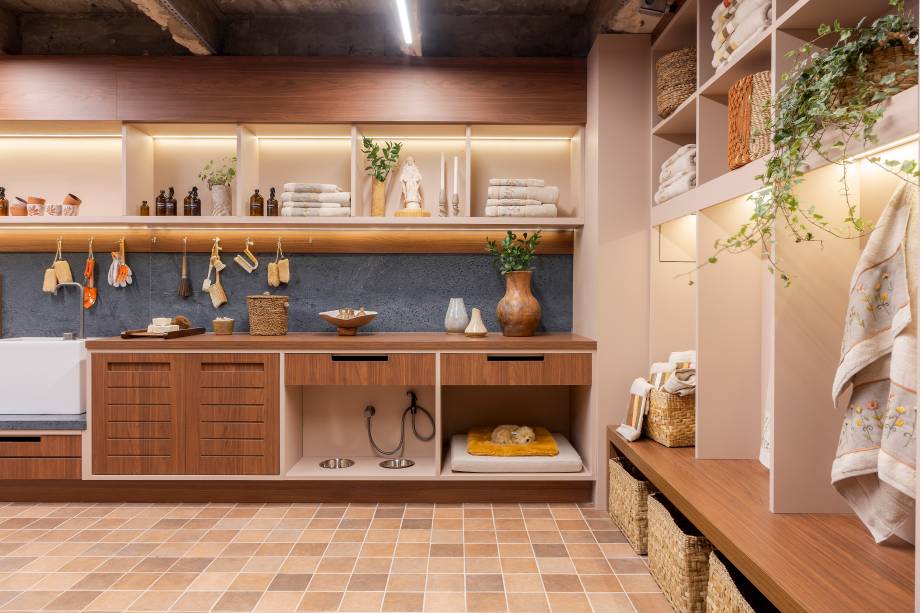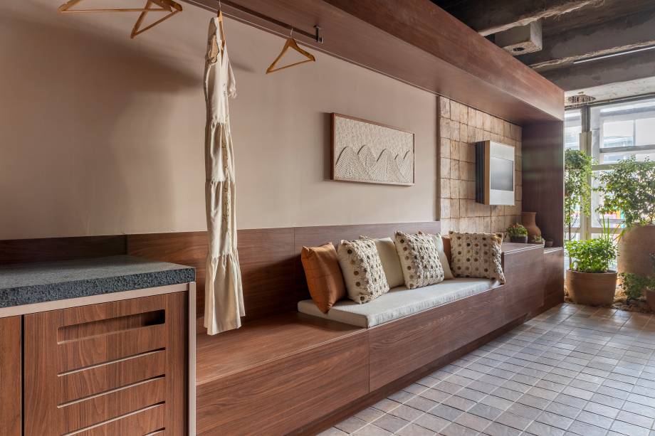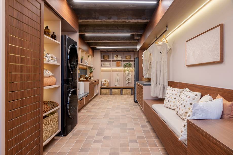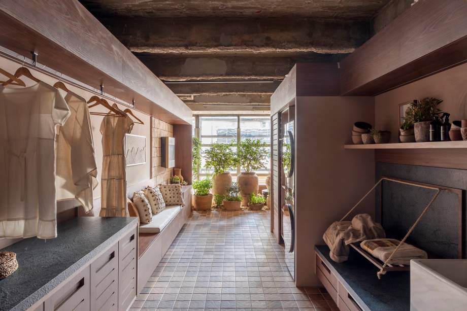 “Junto com as roupas, produtos e acessórios, o ambiente também recebe outros prazeres do morador, como os momentos de jardinagem”, exemplifica.