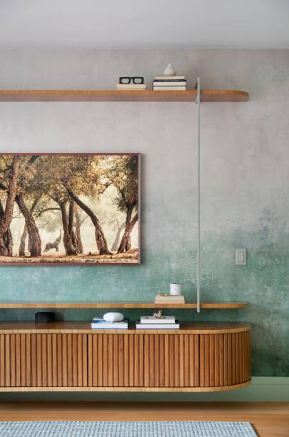 “Ele não apenas se destaca por sua textura e coloração inusitada, mas também por integrar todos os espaços. É como se ele abraçasse os três ambientes, unificando-os visualmente”, finaliza Manoela Fleck.