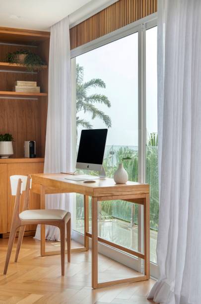 Na decoração, como os espaços existentes foram completamente reformulados, Raposo conta que foi necessário comprar móveis novos. Entre as peças de design assinado, ele destaca a poltrona Pitu (do Aristeu Pires) e a cadeira Helga (do Estudiobola) na mesa de trabalho, próxima à janela.