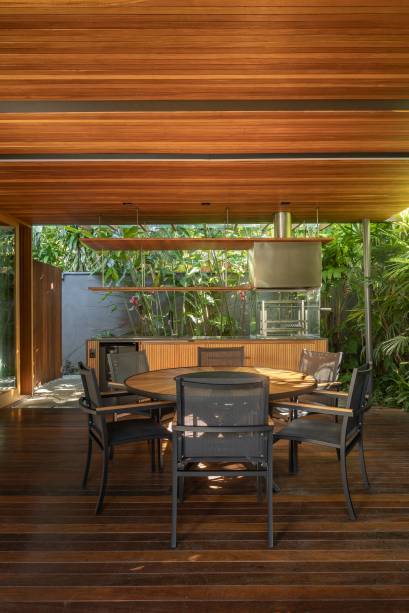 “A cozinha foi projetada como o coração da casa, conectando os moradores com o jardim e a área externa. Queríamos que ela fosse um espaço convidativo e funcional, perfeito para momentos de confraternização”, explica Rodrigo Alves Pereira.