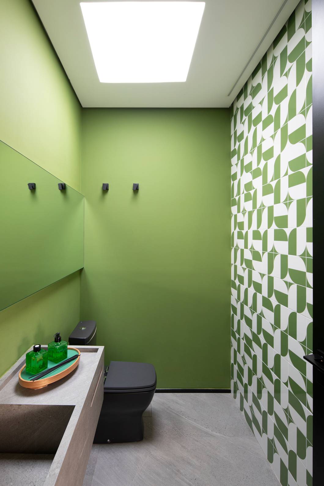 O pé-direito livre de 3,20 m proporciona uma atmosfera sempre arejada nos espaços. Bem brasileiro, o cobogó rouba a cena da casa e injeta bossa extra à narrativa arquitetônica do projeto – o revestimento ainda garante a refrigeração permanente dos interiores, além de uma luz rendada cheia de poesia nos dias mais ensolarados.