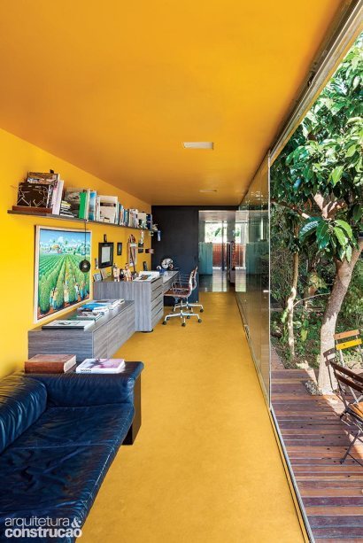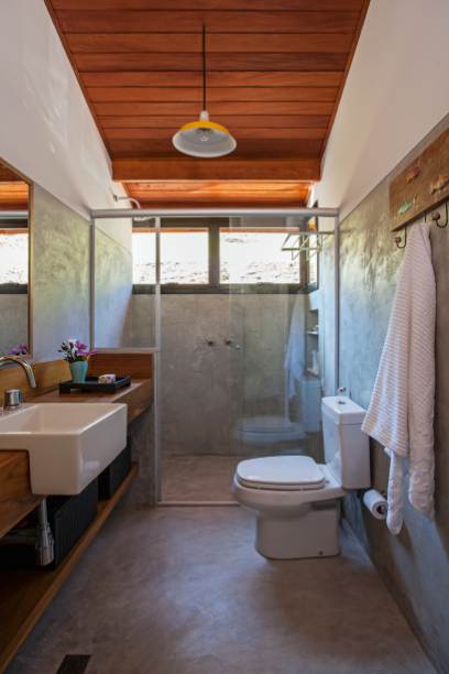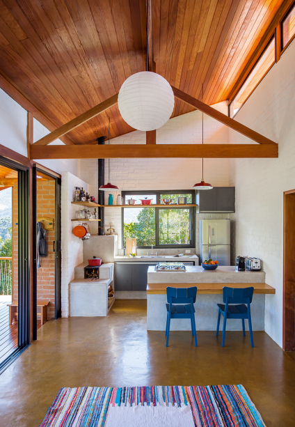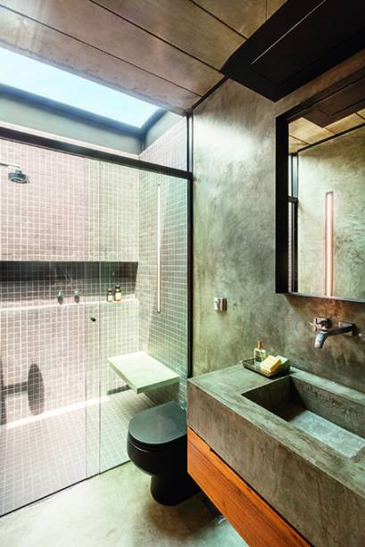 O acabamento aparece no chão, na bancada, na parede e até no teto na proposta do escritório da Casa 100 Arquitetura. (Foto: Paulo Santos)