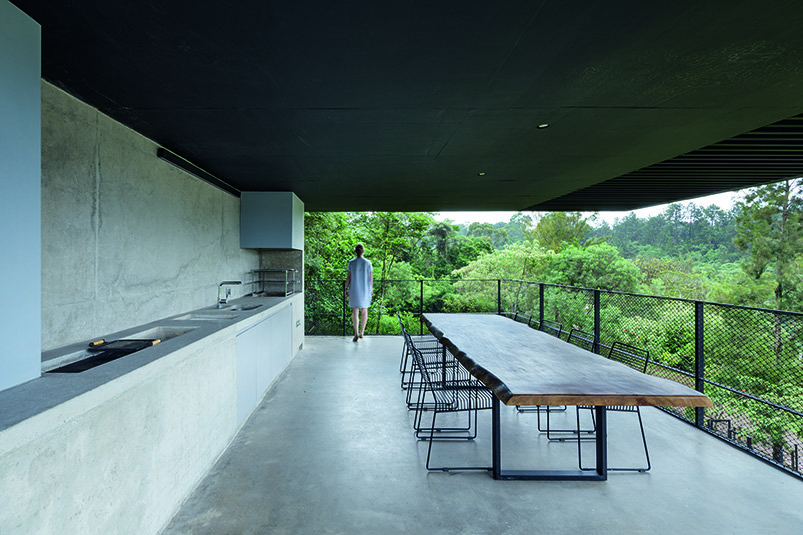 No projeto de lazer assinado pelo escritório in/ex arquitetura, o cimento pigmentado recobre a alvenaria da cozinha, que inclui forno de pizza e churrasqueira. Veja aqui a reportagem completa. (Foto: Andre Nazareth)