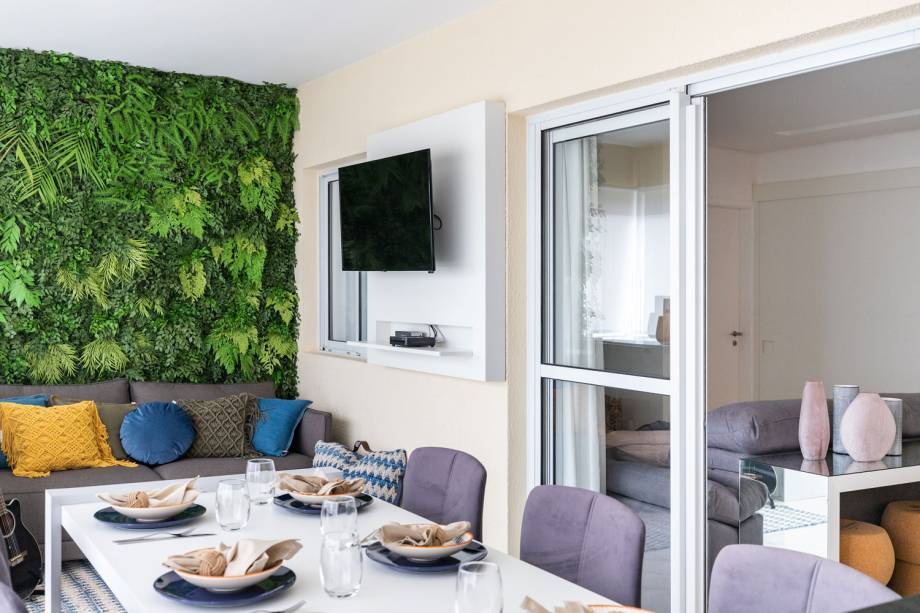 A varanda é o ponto de encontro e de destaque em apartamento de 120 m²