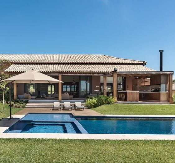 Outra característica marcante das casas de campo são os ambientes amplos e integrados para uma boa reunião em família ou entre amigos. Varandas e piscinas também são super bem vindos.