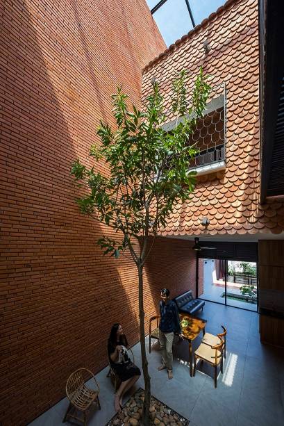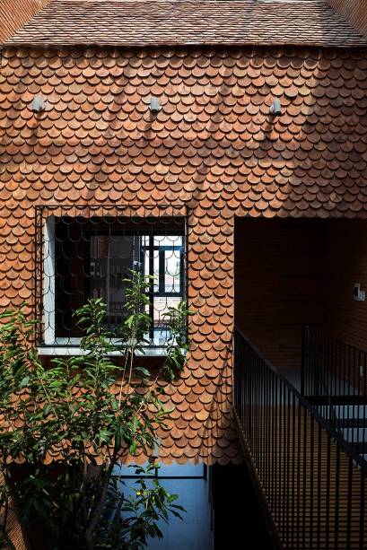 Em termos de materiais, a casa foi construída principalmente com tijolos vermelhos comuns e ladrilhos de escama de peixe que foram reciclados da antiga casa da família. Estes dois materiais conferem ao edifício um aspecto distinto, ao mesmo tempo rústico e vibrante, enquanto os azulejos reutilizados evocam memórias do passado de onde viveram.
