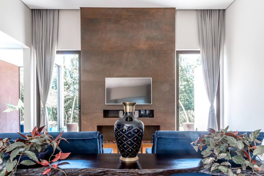 Com a demanda de dispor ambientes amplos, confortáveis, integrados e de circulação descomplicada, o projeto chama atenção pela forte presença do azul, cor que, segundo a Pantone, será tendência em 2020.