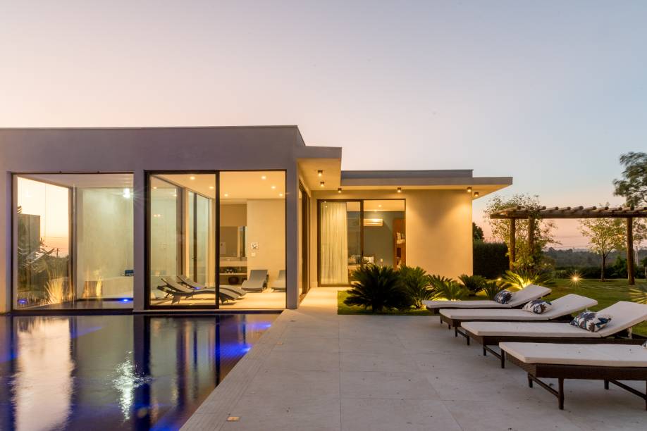 Buscando fazer com que todos se sintam à vontade, o imóvel conta com três áreas distintas, ainda que muito próximas entre si: social, lazer e íntima. No corredor entre os quartos de hóspedes, a iluminação zenital faz com que a luz natural seja melhor aproveitada.