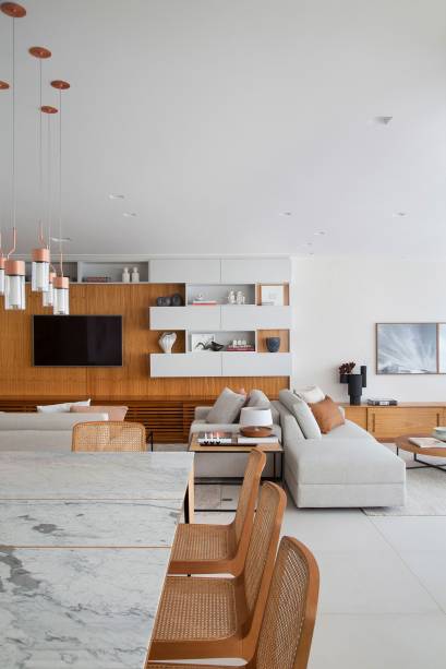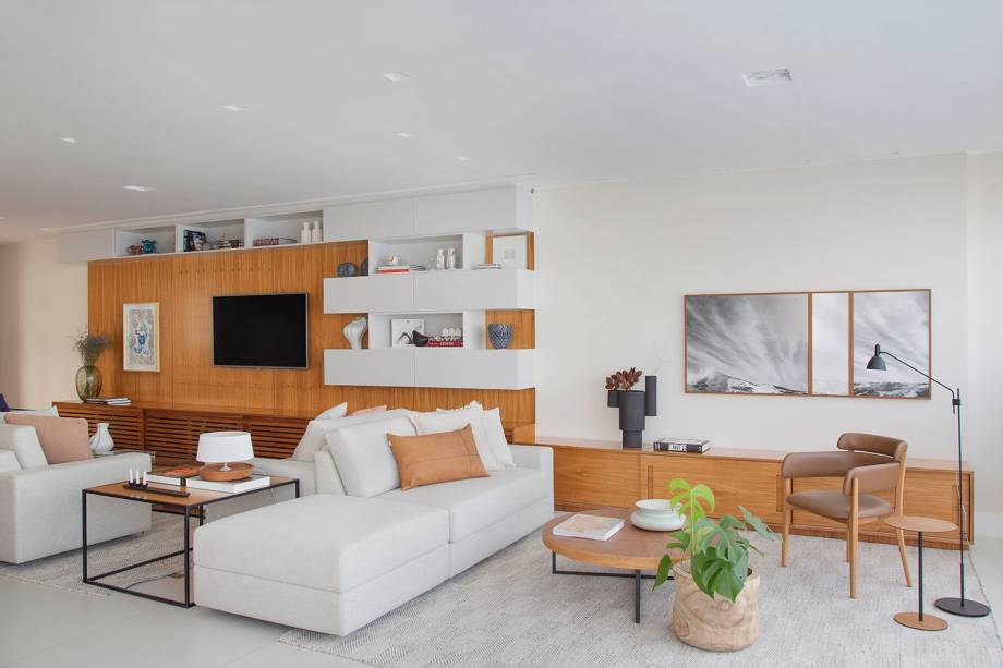 Na parte do décor do apartamento, cores claras e marcenaria projetada dá a identidade de cada cômodo.
