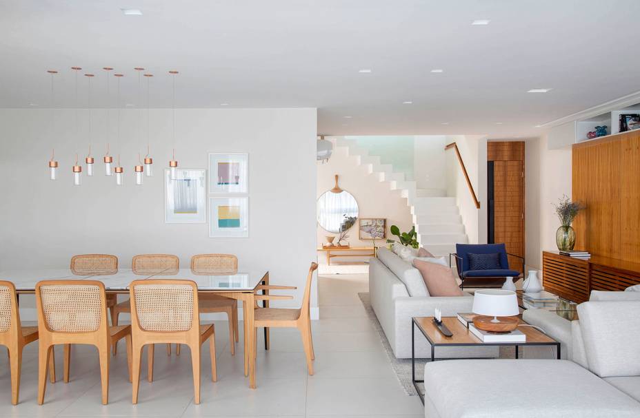A arquiteta Jacira Pinheiro assina o dúplex com cobertura na Barra da Tijuca e cria uma linda escada, que torna-se o destaque de todo o projeto