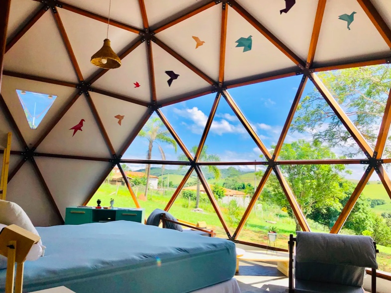 Aproximadamente a uma hora e meia de São Paulo, o Eco Glamping Santa Branca é um domo geodésico construído para fornecer uma experiência única para os visitantes.