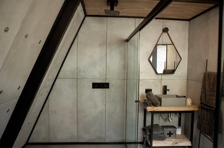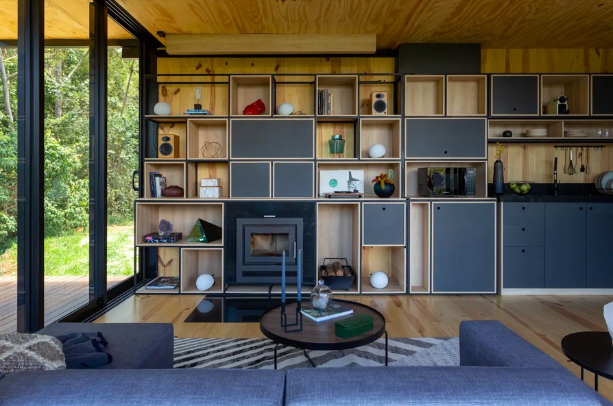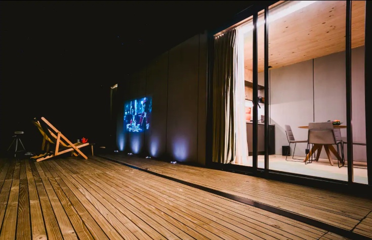 A estrutura de design diferenciada é resistente e leve, projetada 100% em madeira ecologicamente tratada. À noite, um show de céu estrelado é apresentado pelos vidros do espaço principal e, para uma maior privacidade, cortinas foram adicionadas.