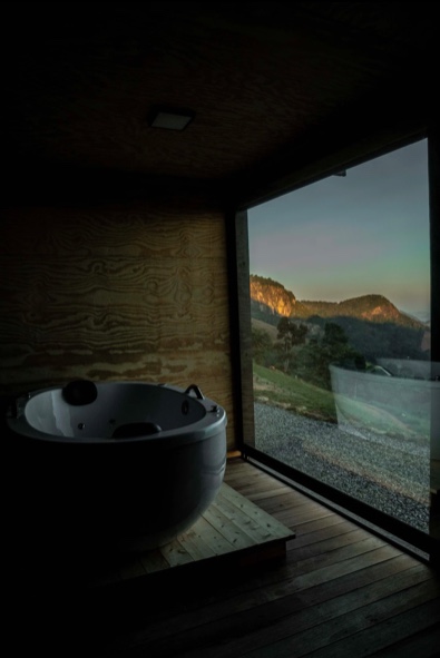 A Cabana Vin, a 1670m de altitude, foi projetada para proporcionar uma vivência de mergulho no mato. A 4 km de distância da Pedra do Baú, a hospedagem inclui uma jacuzzi interna com vista para as montanhas e lareira para o inverno.