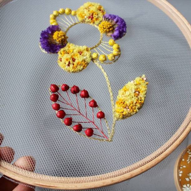 Além disso, a Prinku está lançando um livro intitulado “Dried Flower Embroidery”, que será publicado em outubro de 2021 pela Quadrille/Hardie Grant.