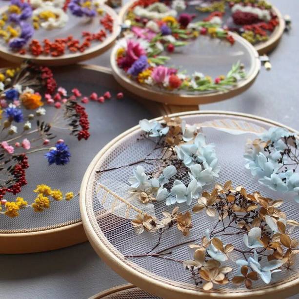 Olga Prinku cria peças lindas e delicadas com flores secas e linha