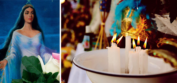 Alguns elementos podem nos ajudar a entrar na mesma vibração de Iemanjá – os rituais e oferendas são uma dessas formas. Lembre-se portanto que cor azul claro pode fazer com que você se sintonize com a vibração energética da Mãe das Águas. Um ritual possível e muito bonito, sugerido por Deuse, é o de acender 7 velas de cor azul clarinho dispostas em círculo e, junto a elas, colocar rosas brancas.