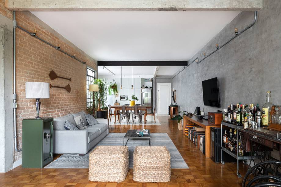 Com o desejo de integrar sala à cozinha, uma suíte com bastante espaço útil e varanda com churrasqueira para aproveitar momentos de descontração, o escritório Espacial Arquitetos, comandado pelos arquitetos Larissa Teixeira e Reginaldo Machado, buscou inspiração nos lofts nova iorquinos e trouxeram muita concepção urbana para dentro deste apartamento de 180 m² em Pinheiros, São Paulo.