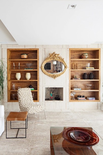 Apartamento de 390m² tem madeira nas paredes e piso de mármore travertino