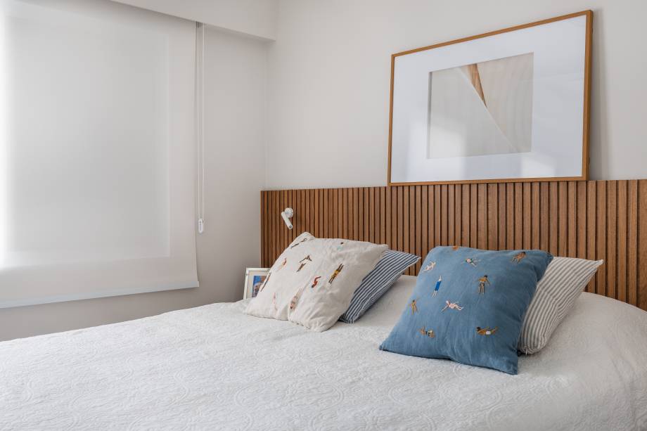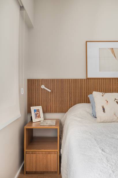 Para isso, uma série de intervenções foram realizadas, como a troca do piso frio por vinílico amadeirado e a reformulação da marcenaria, que ganhou elementos em madeira e acabamentos claros. O grande desafio, porém, foi proporcionar conforto térmico em um clima tão distinto do Rio.