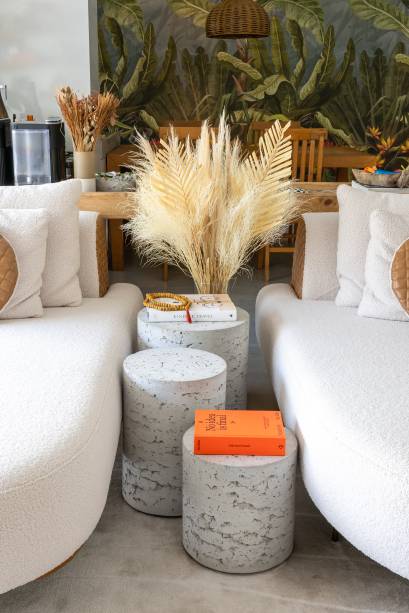 Durante o processo criativo, uma pesquisa foi conduzida para identificar pequenos ateliês e estúdios que estivessem trabalhando com materiais como cerâmica, concreto e madeira de forma original e criativa.