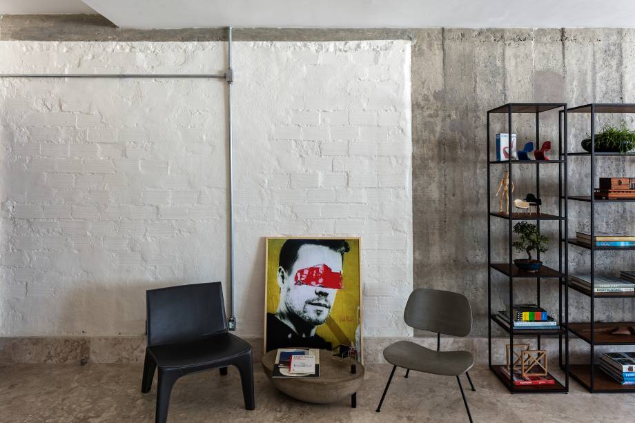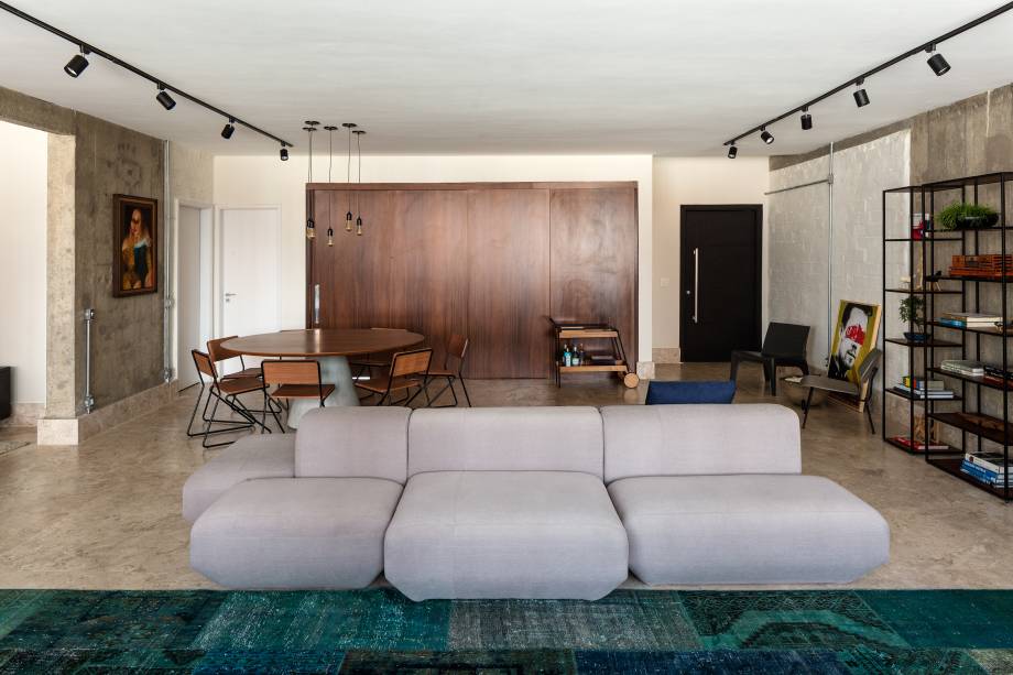 “Apesar de reformado recentemente, o apartamento estava repleto de papel de parede, molduras, rebaixamento de gesso, painéis de madeira e elementos decorativos que nada refletiam a essência modernista do edifício – a sensação era de um lugar genérico, que poderia estar em qualquer prédio da cidade”, dizem. Daí, começou a missão de restaurar o espaço e evidenciar toda a história por trás do endereço.