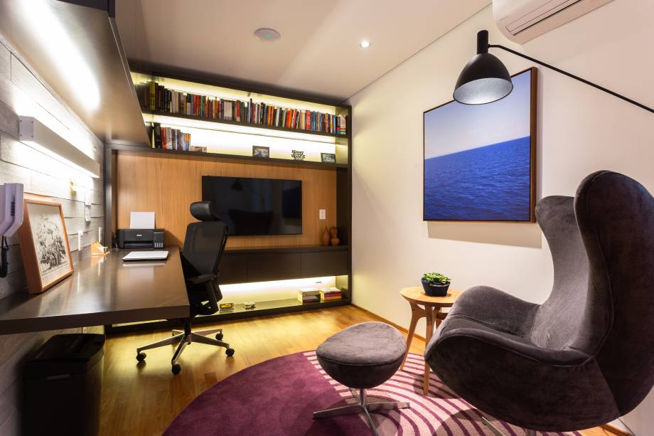 O projeto luminotécnico é outro fator que constitui o charme desse projeto, uma vez que é acoplado na marcenaria e ilumina armários e nichos de dentro para fora.