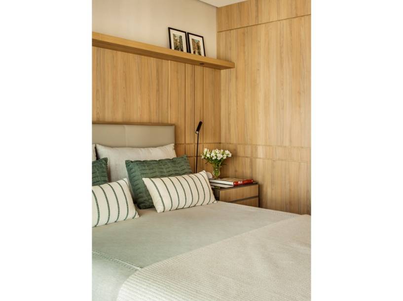 “Em couro e camurça, materiais que aliam sofisticação ao décor, a peça também pode ser contemplada como uma poltrona extra ou um apoio para os pés. Amamos essa versatilidade”, explica Paula Passos.