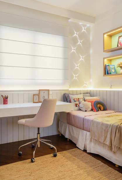 Na parte interna, a transformação mais significativa, além da decoração dos quartos e banheiros, foi a criação de uma sala íntima. Esta sala foi criada “roubando” um espaço de cada um dos três quartos adjacentes e tornou-se uma super sala de TV e brinquedos para as meninas.