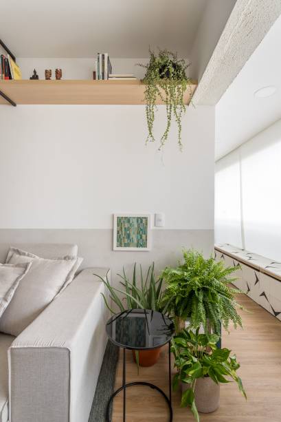 “Sugerimos, logo de saída, o isolamento dos ambientes e uma proposta inusitada: uma entrada única pela varanda, o que causou um estranhamento da moradora no começo, porém, aos poucos, a ideia foi assimilada”, explica o escritório.