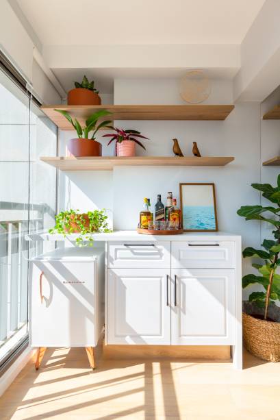 O projeto é do Estúdio Maré, que integrou ambientes e desenhou toda a marcenaria utilizada no imóvel