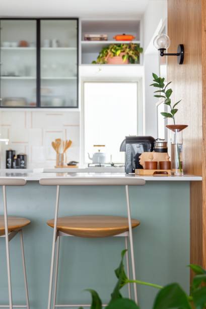 O escritório Conectarq criou um projeto clean e leve, com cozinha integrada.