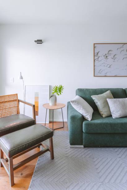 A cozinha, ganhou uma atmosfera fresca e acolhedora com a marcenaria em um suave tom de verde menta, e com o piso de ladrilho hidráulico. “O entusiasmo das cores distribuídas no projeto de reforma foi inspirado no amarelo presente em todo gradil que protege as varandas. Essa escolha resultou em uma fachada muito singular e, por isso, decidimos trazer essa alegria em uma combinação muito bem dosada”, ressalta.