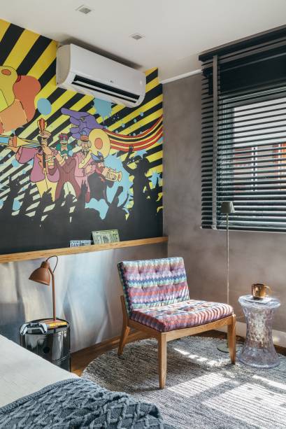 O escritório Casa Cururu Arquitetura renovou os quartos e toda área social, imprimindo uma atmosfera descolada e com cores marcantes