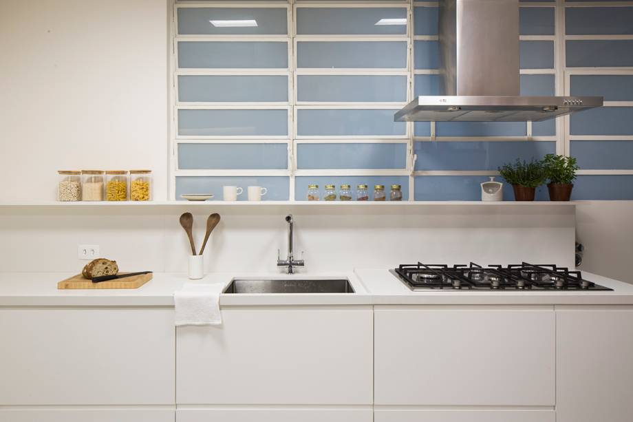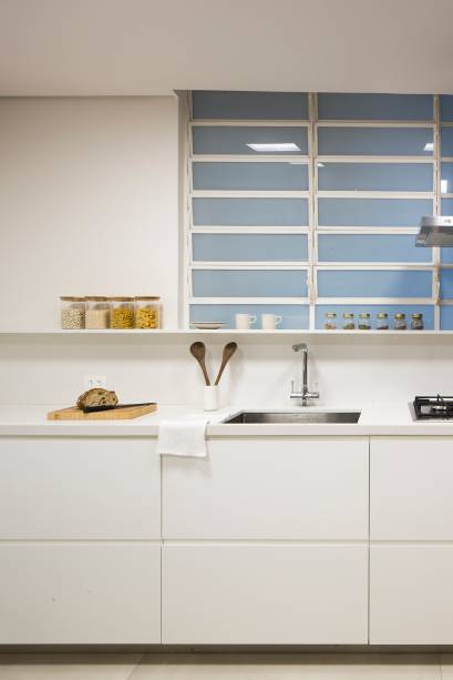 “Fizemos toda uma logística junto à gerenciadora de obras para a moradora se acomodar em um dos quartos e fizemos uma pequena cozinha de apoio enquanto a obra acontecia no restante do apartamento”, explicam.