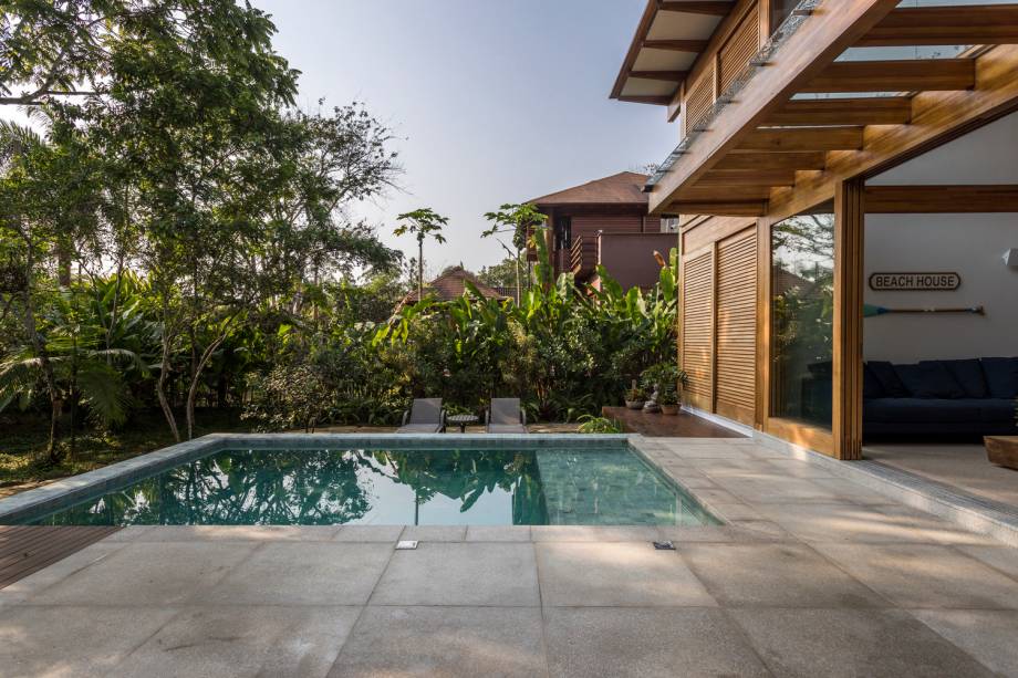 Em meio à vegetação de árvores nativas, o projeto de Flávia Menezes Arquitetura e Interiores abraça o entorno. Com um conceito aberto, sua composição traz a natureza para dentro da casa, elimina as fronteiras entre interior e exterior. Cores, materiais, texturas e transparências possibilitam a comunicação total da casa, trazendo a agradável sensação de aconchego e conforto.