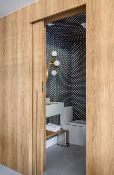 Coube à designer Lana Rocha, que é mãe da proprietária, conceber todo o projeto de interiores, de estilo contemporâneo, tanto dos ambientes indoor como da área externa – da escolha dos materiais de acabamento às marcenarias desenhadas sob medida, passando por móveis, acessórios e adornos em geral.