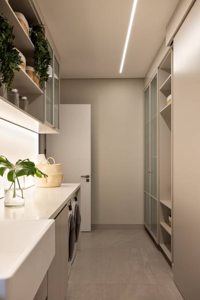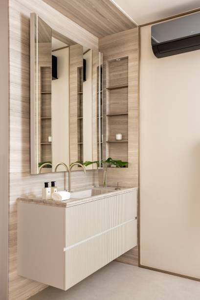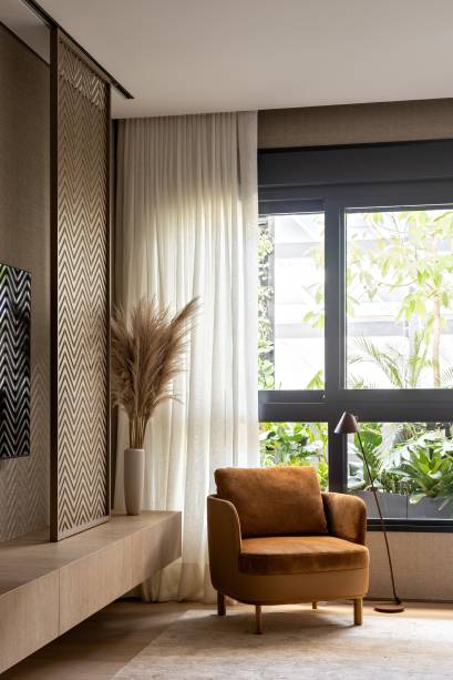 Focado em conforto e sofisticação, o décor planejado pelo LW Design é repleto de tons neutros e materiais naturais