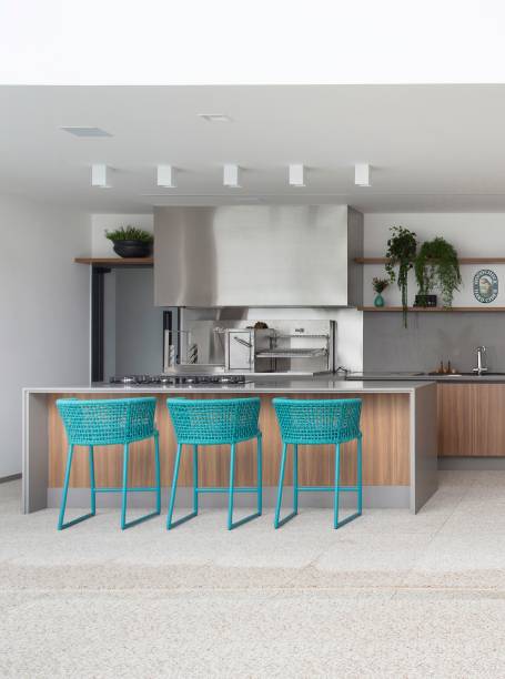 Concebida especialmente para receber os amigos, a varanda gourmet foi estrategicamente posicionada ao lado da cozinha principal para que alguns equipamentos pudessem ser compartilhados entre os dois ambientes.