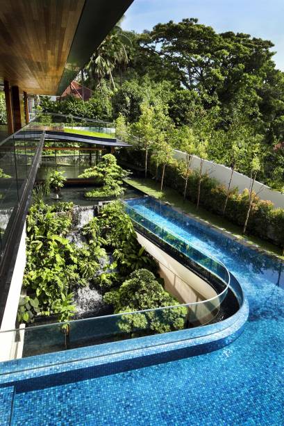 Debruçada sobre os Jardins Botânicos de Cingapura (que é patrimônio da UNESCO), a w, desenhada por Guz Architects, parece flutuar sobre a mata graças a estruturas em consola – criando uma perfeita integração entre exterior e interior.