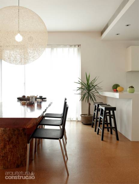 Contudo, o grande charme da reforma se deve ao bambu, estrela principal do projeto. Essencial nos jardins chineses imperiais, ele compõe estantes, armários e, principalmente, o belíssimo painel que acompanha a escada. “Talvez a escolha desse material se deva a uma vontade de trazer ao máximo a cultura do nosso país para dentro de casa”, explica ela.
