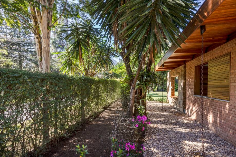 A casa de hóspedes de campo pode abrigar até seis pessoas e foi projetada do zero pela arquiteta Fabiana Cyon, em parceria com a arquiteta Ana Paula de Castro.