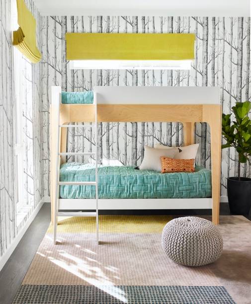 Na decoração, destacam-se paredes de gesso nos quartos, armários do chão ao teto na cozinha e papel de parede amadeirado em vários ambientes. Tudo para criar espaços acolhedores e com um toque contemporâneo.