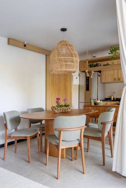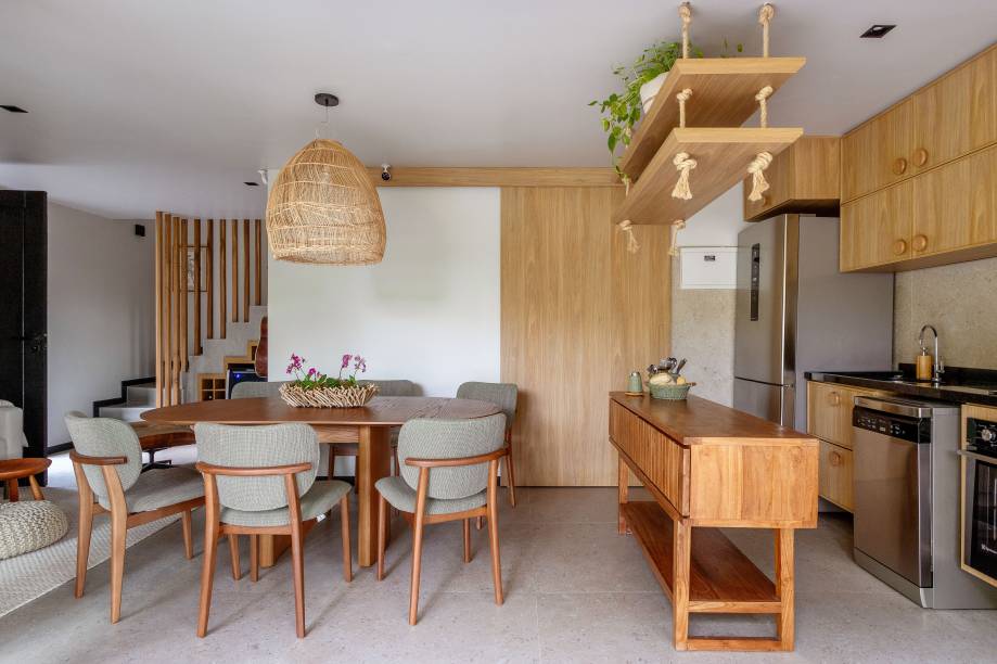 Nos interiores, a arquiteta Juliana Zappa apostou nas texturas como madeira, sisal, palha e tecidos naturais para conferir um ar despojado.