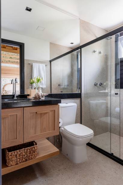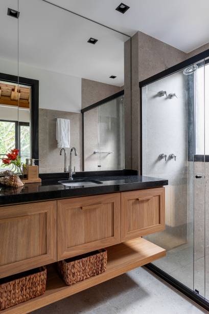 A arquiteta e sua família desejavam uma obra rápida, com o mínimo de intervenção e bastante marcenaria planejada, para aproveitar todos os cantos disponíveis. “Na reforma, realizada em três meses, transformamos a despensa em um banheiro, para atender à área externa, instalamos um aquecedor na piscina e criamos um deck, estendendo a área gourmet. Piso e bancadas foram mantidos de acordo com a entrega da construtora”, lista Juliana.