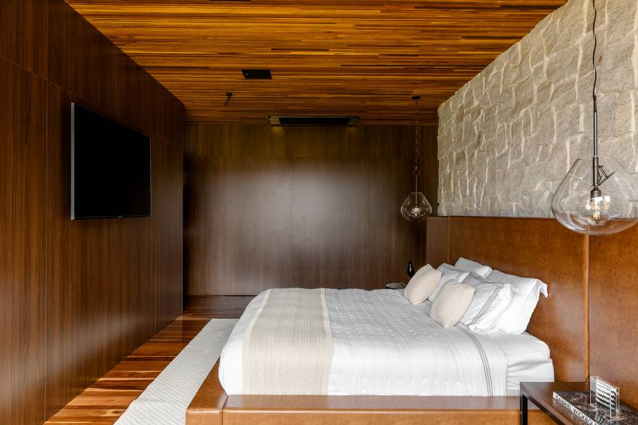 A área social da casa é um espaço fluido, onde portas de vidro se retraem completamente nas paredes, criando uma conexão direta entre o interior e o exterior. Diálogo que também está presente nos dormitórios: duas suítes e a suíte master, de 90 m², completamente ligadas à área externa.