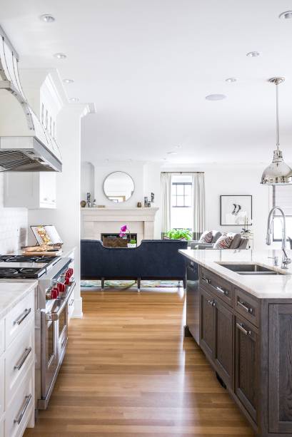 Ao projetar a Rosemont Residence, o escritório Reena Sotropa In House Design Group teve como prioridade garantir uma casa elegante, mas atemporal, com alta funcionalidade para acompanhar o estilo de vida agitado de uma jovem família de cinco pessoas.