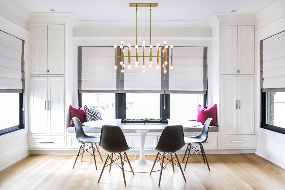 O recanto da cozinha não é apenas esteticamente agradável e divertido, mas também é excelente no quesito de eficiência! O banco de janela embutido funciona como uma área de estar e espaço de armazenamento.