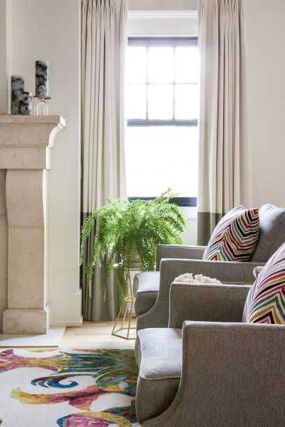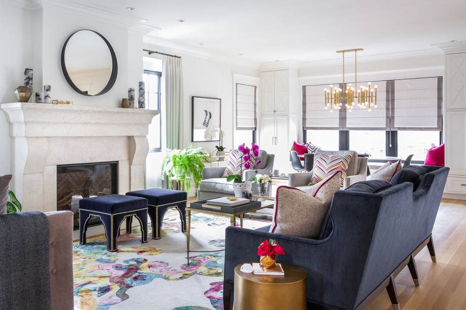 Localizada em Calgary, Canadá, a inspiração da cor para toda a casa estava profundamente enraizada em um tapete de tirar o fôlego que Reena Sotropa, designer responsável pelo projeto, e o cliente encontraram em um de seus passeios.