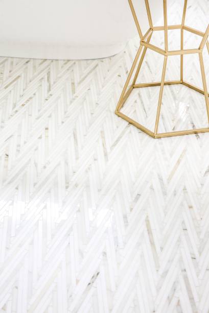 Em comparação com o piso principal, cheio de cores e detalhes marcantes, o quarto principal e o banheiro são espaços muito mais sutis e relaxantes. A ideia era que a suíte principal se tornasse um retiro pessoal para nossos clientes, onde eles pudessem fazer uma pausa em seu dia a dia agitado. Para isso, o escritório optou por uma paleta neutra mais serena.